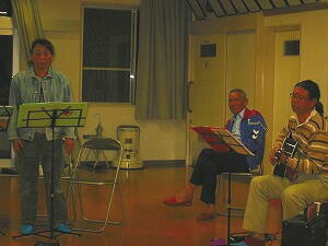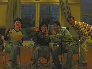 村長、不覚にもちょっとのどが。。。みんなのサポートでなんとか。。。 |